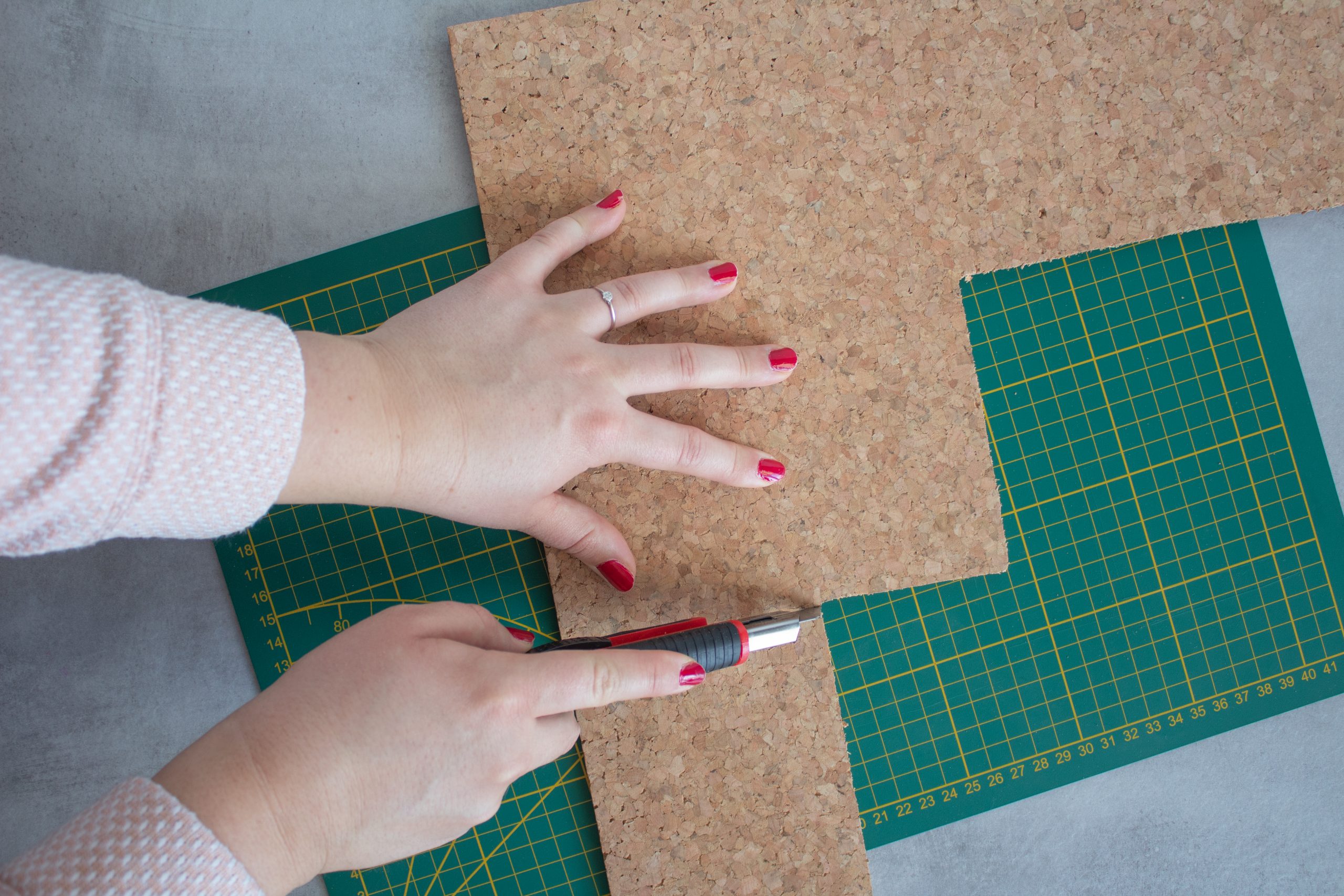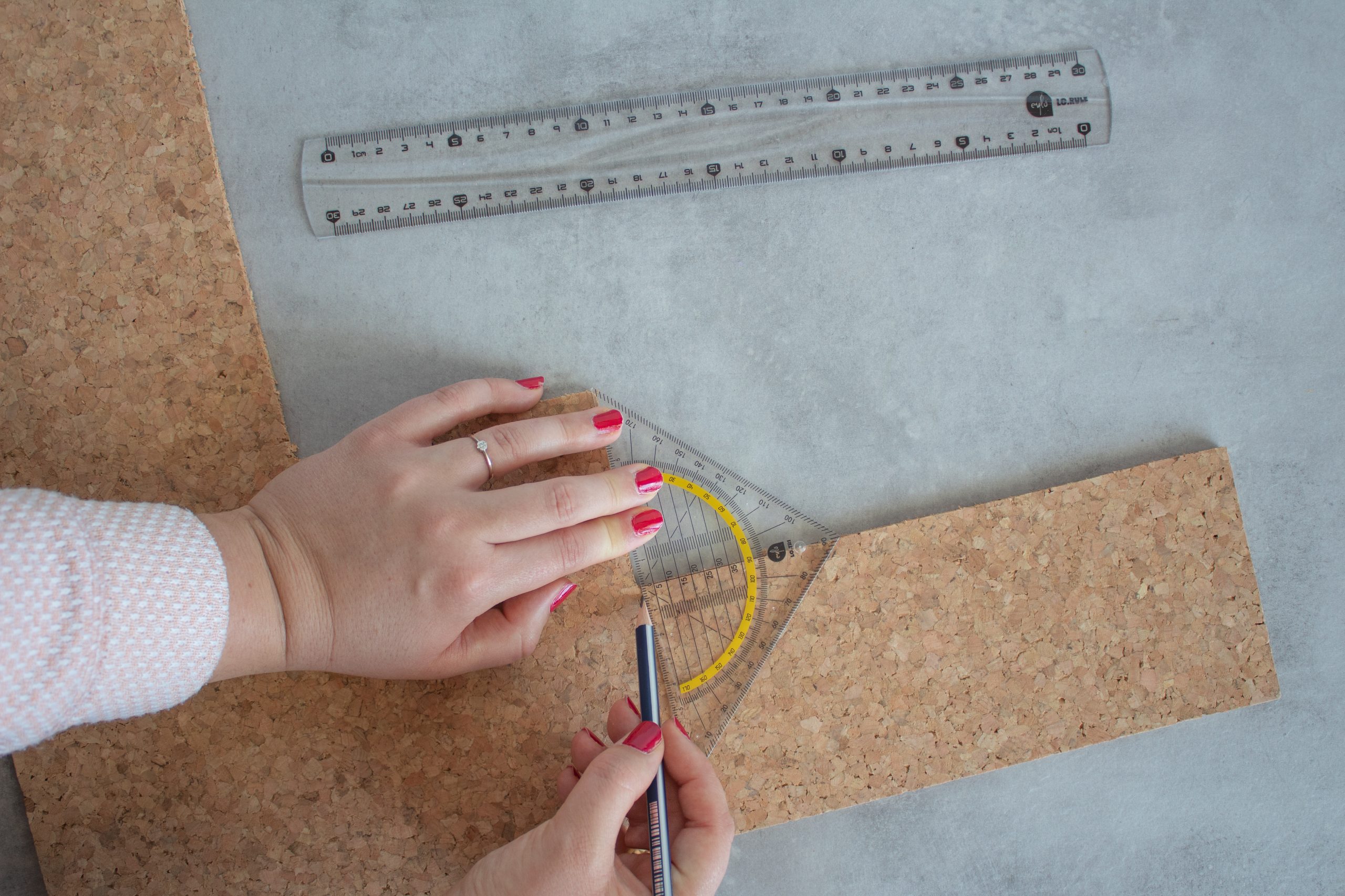 - Übertrage deine Maße auf die Korkplatten.
