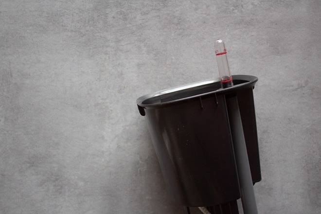- Gieße die Pflanze vorsichtig von oben, noch nicht über die Füllstandanzeige.